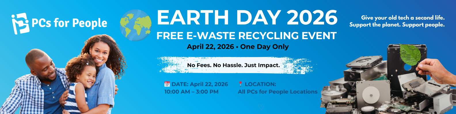 Our work is powered through free e-waste pickup and recycling of electronic equipment from businesses, corporations, and governmental organizations. PCs for People has both NAID AAA and R2 certifications, meaning your data is protected through strict adherence to the highest standards of information destruction, hard drive sanitization, and all recycling is environmentally responsible.